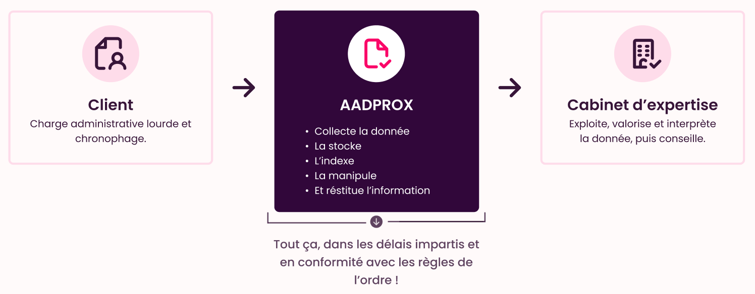 Le cabinet oriente ses clients vers un Aadprox qui les assiste directement dans la gestion documentaire, puis transmet les documents préparés au cabinet.